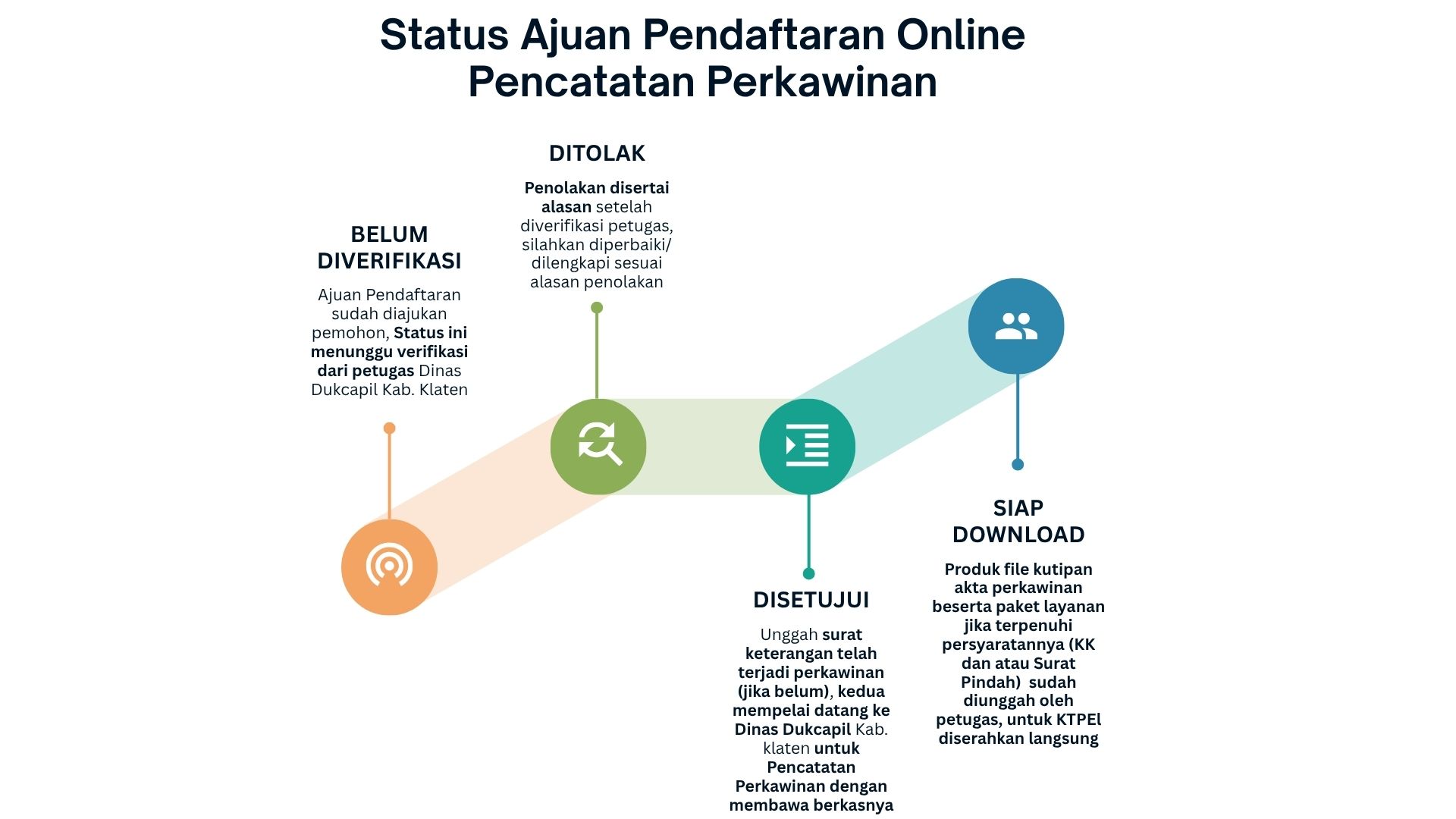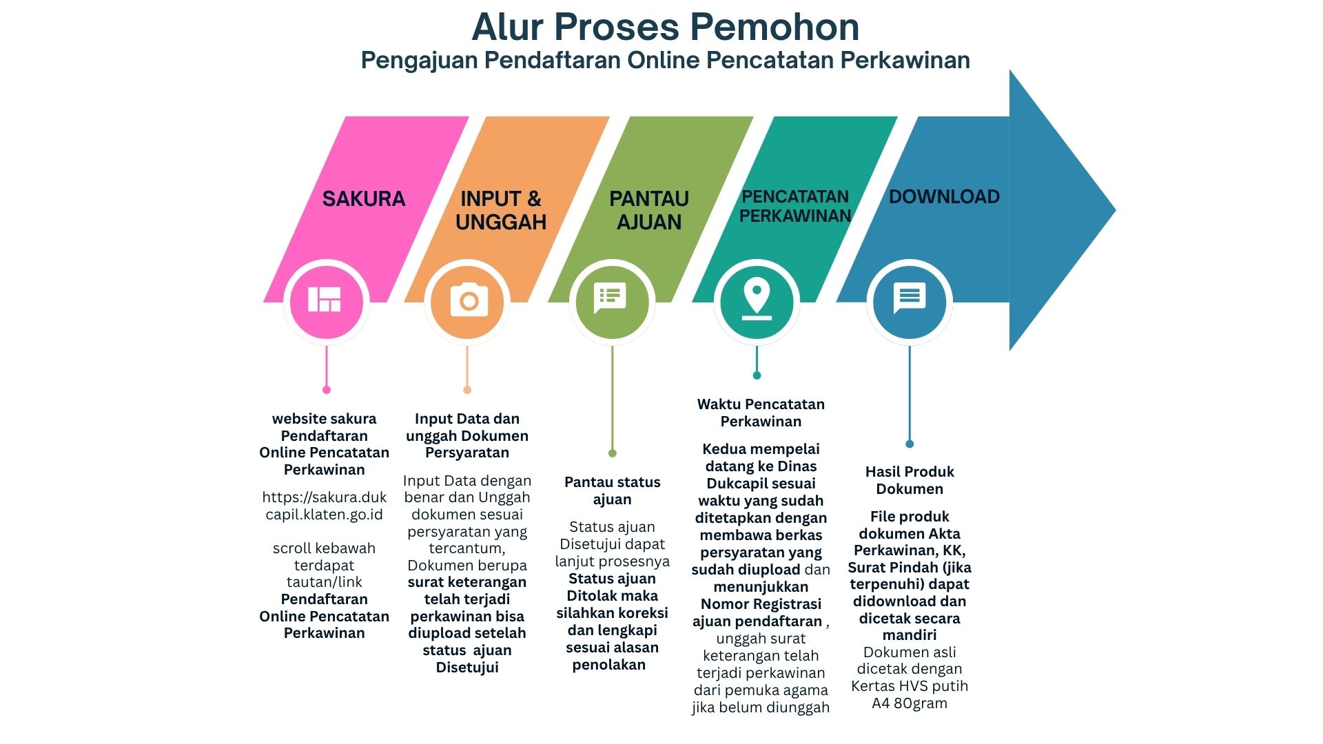 - Akta Perkawinan + KK + Surat Pindah (perpindahan penduduk ke luar Kabupaten Klaten)